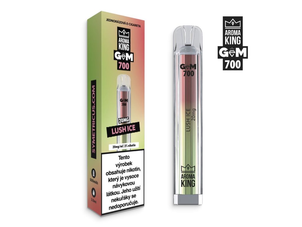 Jednorázová e-cigareta Aroma King Gem Bar 700 s příchutí Lush Ice se šťavnatou a ledově svěží chutí sladkého vodního melounu. Vychutnejte si chladivý melounový hit bez jakýchkoli složitostí.