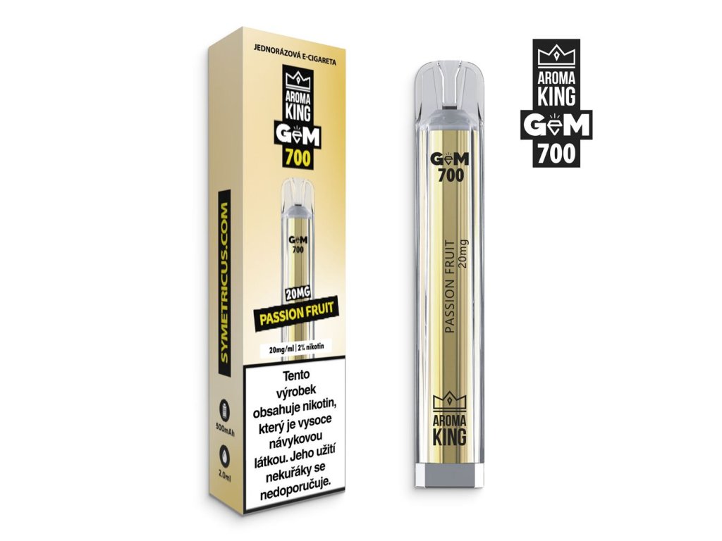 Jednorázová e-cigareta Aroma King Gem Bar 700 Passion Fruit s příchutí sladké marakuji. Exotický zážitek pro všechny, kteří touží po něčem novém a neobvyklém.