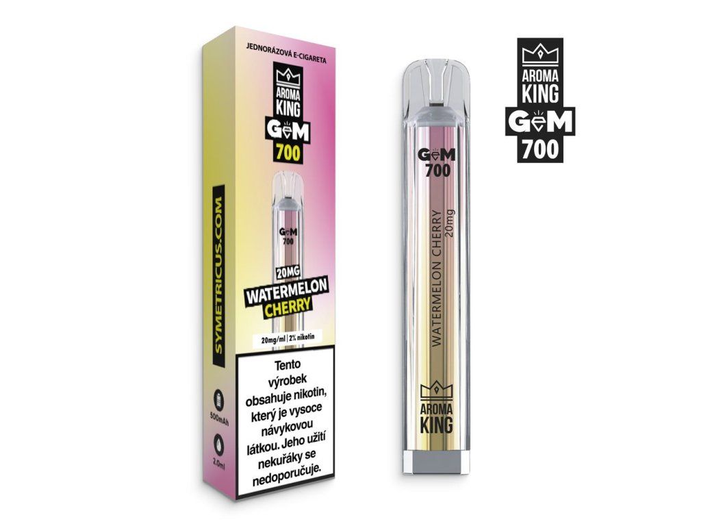 Jednorázová e-cigareta Aroma King Gem Bar 700 Watermelon Cherry kombinuje osvěžující chuť zralého melounu se sladkostí třešní.