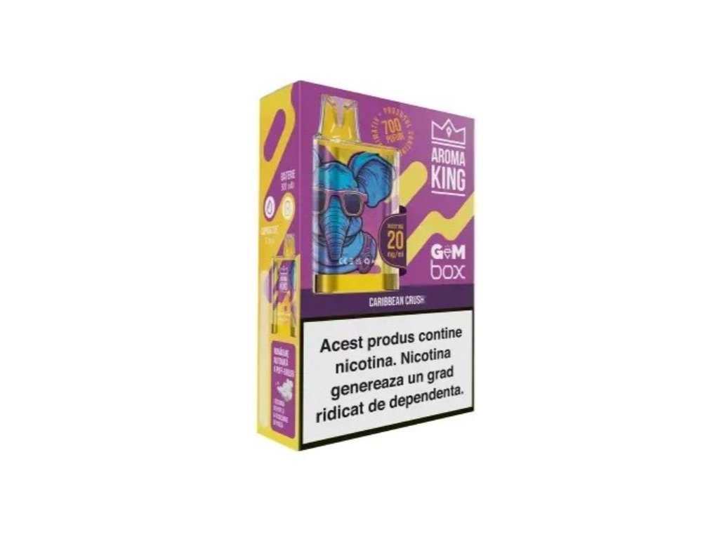 Vyzkoušejte naší jednorázovou e-cigaretu Aroma King Gem Box 700 Caribbean Crush s neodolatelnou chutí tropického ovoce.