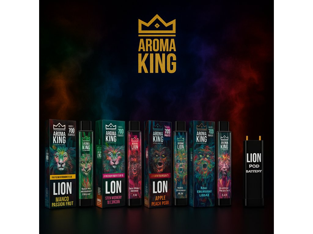 Aroma King přichází s ekologičtější a úspornější variantou e-cigaret pod názvem LION POD, jejímž základem je dobíjecí baterie o kapacitě 350mAh a vyměnitelná předplněná cartridge o objemu 2ml. Nyní už nemusíte po spotřebování e-liquidu vyhodit celé zařízení, ale stačí pouze vyměnit předplněnou cartridge s e-liquidem dle vlastního výběru.